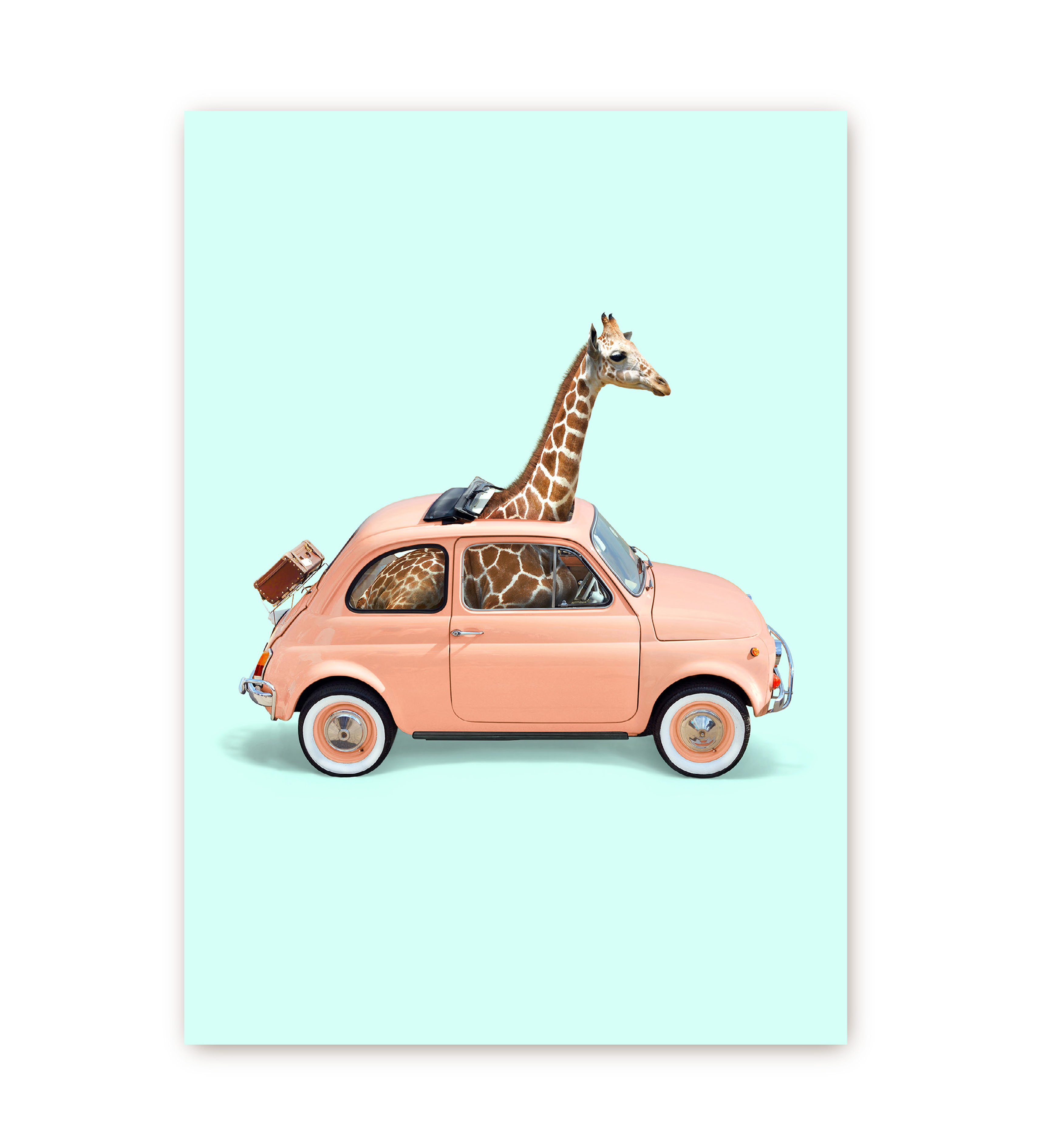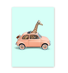 Giraffe Vintage Car Postcard