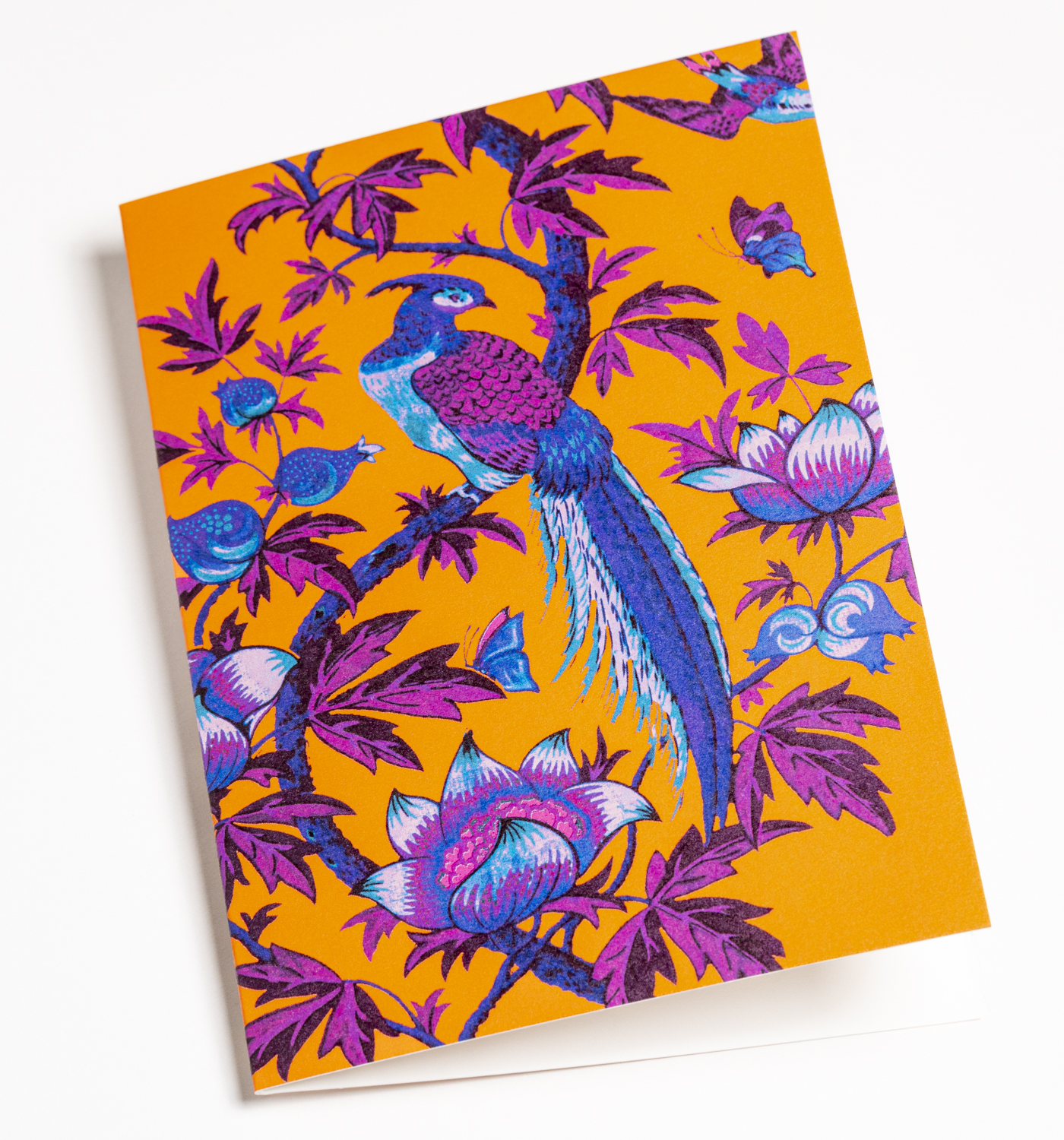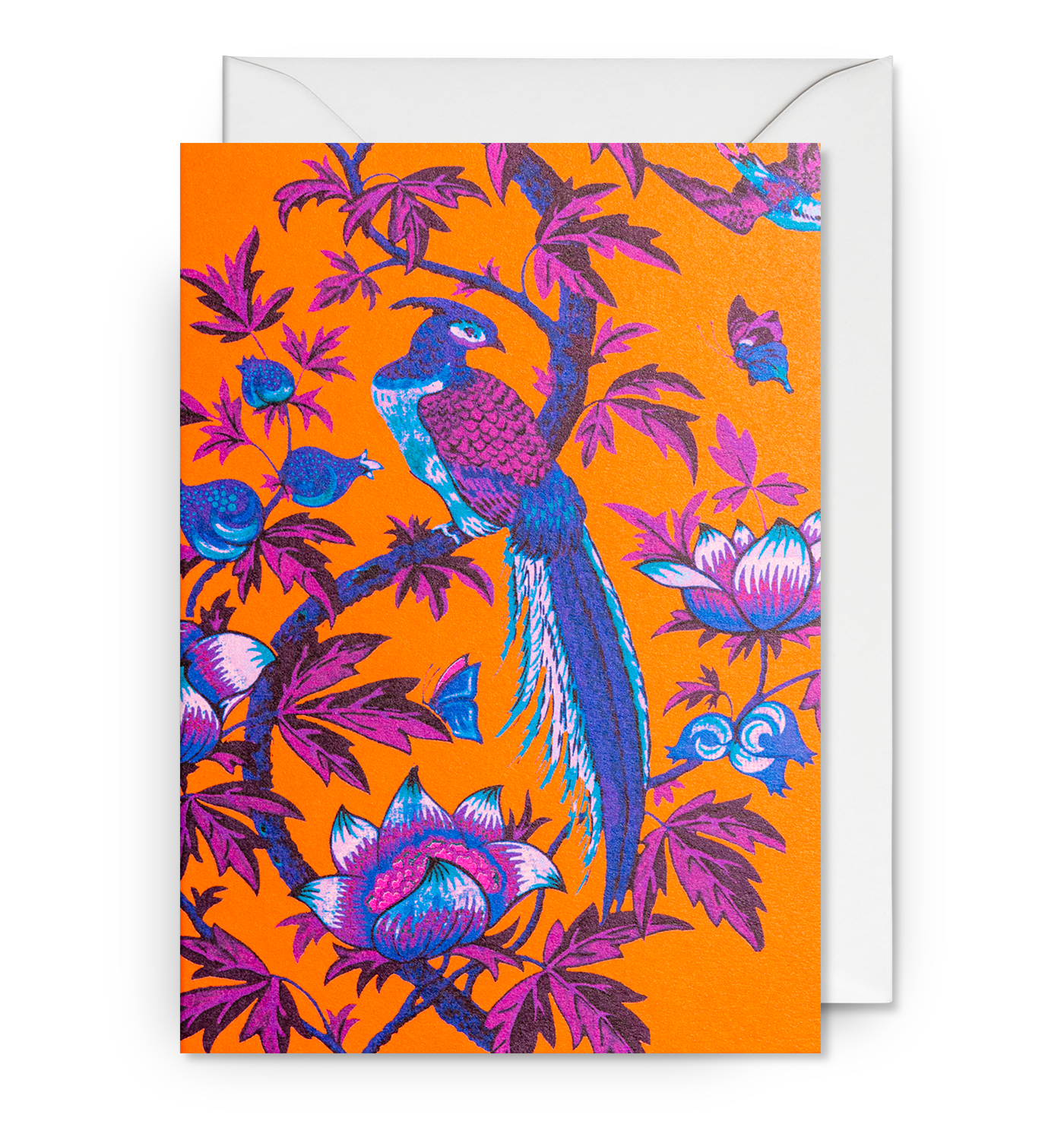 Majestic Bird Orange Exotic Floral Greeting Card